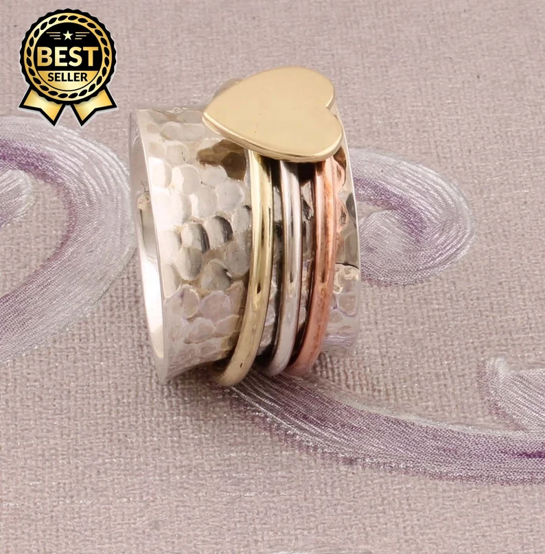 โบฮีเมียน925โบราณแหวนหัวใจสปินเนอร์เงินสเตอร์ลิงทรงกลมคลาสสิกพร้อมดีไซน์รูปหัวใจแนววินเทจไม่เหมือนใครสำหรับงานแต่งงานงานปาร์ตี้
