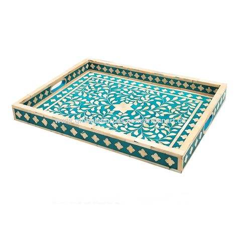โบสถังฝังโบราณถาดเสิร์ฟแฮนด์เมดชุดถาดเสิร์ฟดอกไม้สีขาวพร้อมโลโก้ที่กําหนดเองฝังกระดูกถาดเสิร์ฟตกแต่ง