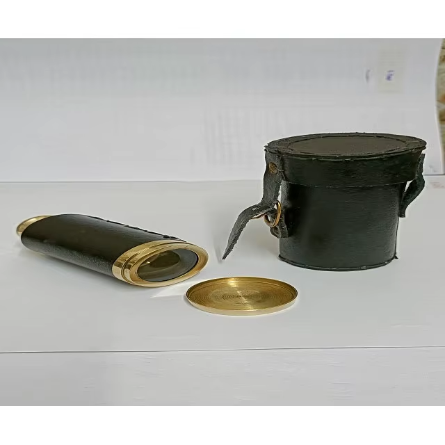 กล้องส่องทางไกลทองเหลืองโบราณขนาด6นิ้วพร้อมกล่องไม้ชุบทองแดงดีไซน์สมอเรือ