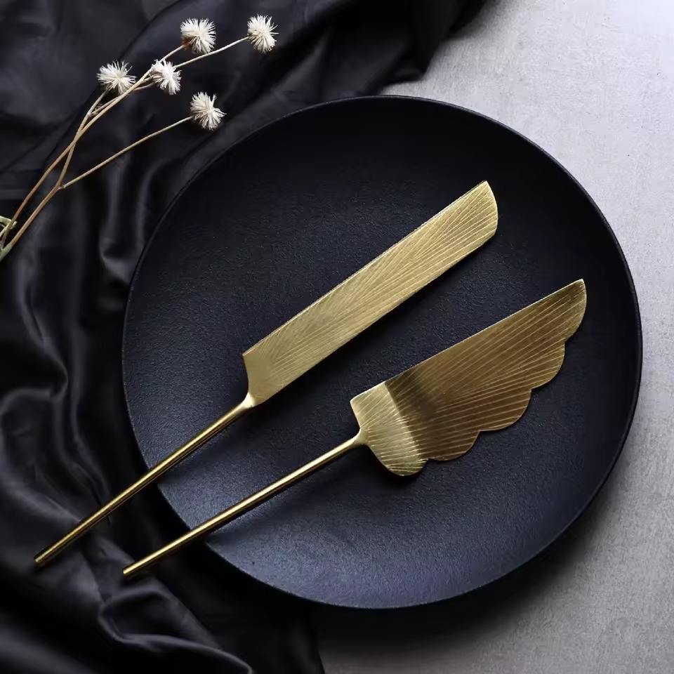 ชุดมีดและเซิร์ฟเวอร์ทองเหลืองโบราณสำหรับช่างออกแบบตกแต่งภายใน