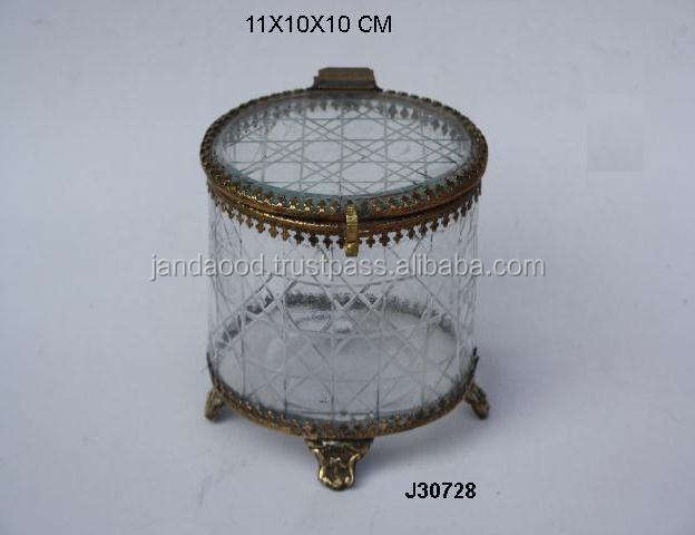 ทองเหลืองโบราณเสร็จแก้วกลมและกล่องทองเหลืองที่มีอยู่ในรูปทรงอื่นๆและกล่องเครื่องประดับเสร็จสิ้น
