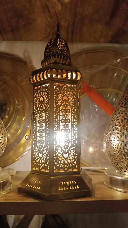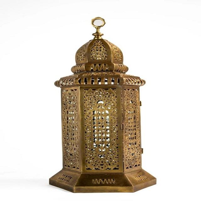 โคมไฟตั้งพื้นทองเหลืองโบราณทำด้วยมือสไตล์โมร็อกโกพร้อมโดมด้านบน