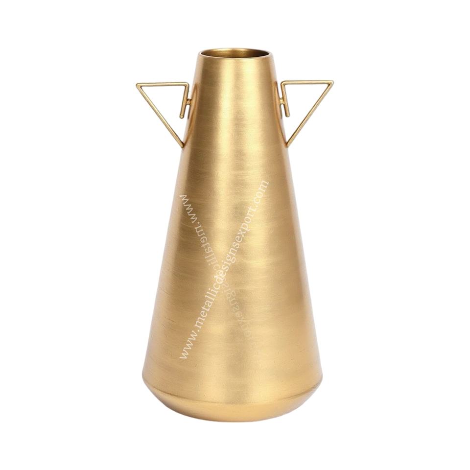 แจกันดอกไม้ทองเหลืองโบราณดีไซน์ทรงกรวยด้ามจับหกเหลี่ยมสำหรับตกแต่งบ้านสำนักงานงานอีเวนท์เน้นเสียงสูงแจกันตั้งพื้น