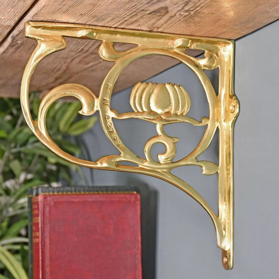 ชั้นวางเกียร์ทองเหลืองโบราณคู่ยึดผนังอุตสาหกรรมวินเทจรองรับงานหนักสำหรับตกแต่งบ้านสำนักงาน