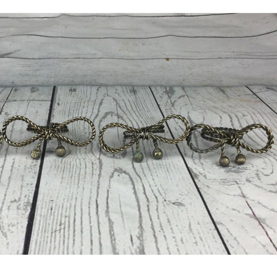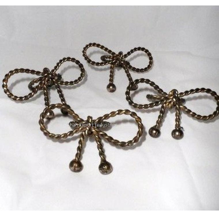 แหวนผ้าเช็ดปากรูปโบว์สีทองทองเหลืองโบราณสำหรับงานแต่งงานงานเลี้ยงอาหารค่ำของตกแต่งโต๊ะที่ใส่ผ้าเช็ดปากทำมือ