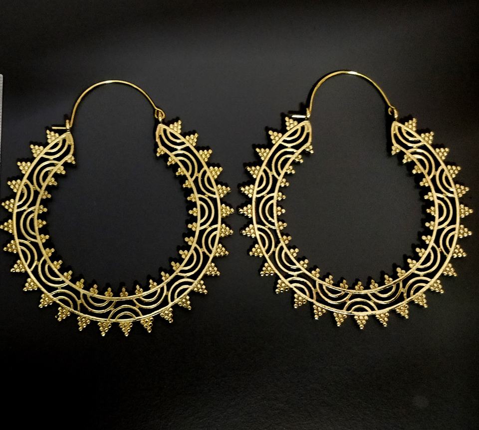 ห่วงทองเหลืองสไตล์ยิปซีแบบโบราณของชนเผ่าอินเดีย,ตุ้มหูแมนดาลาเครื่องประดับสไตล์วินเทจแบบชาติพันธุ์สีทองเหลือง