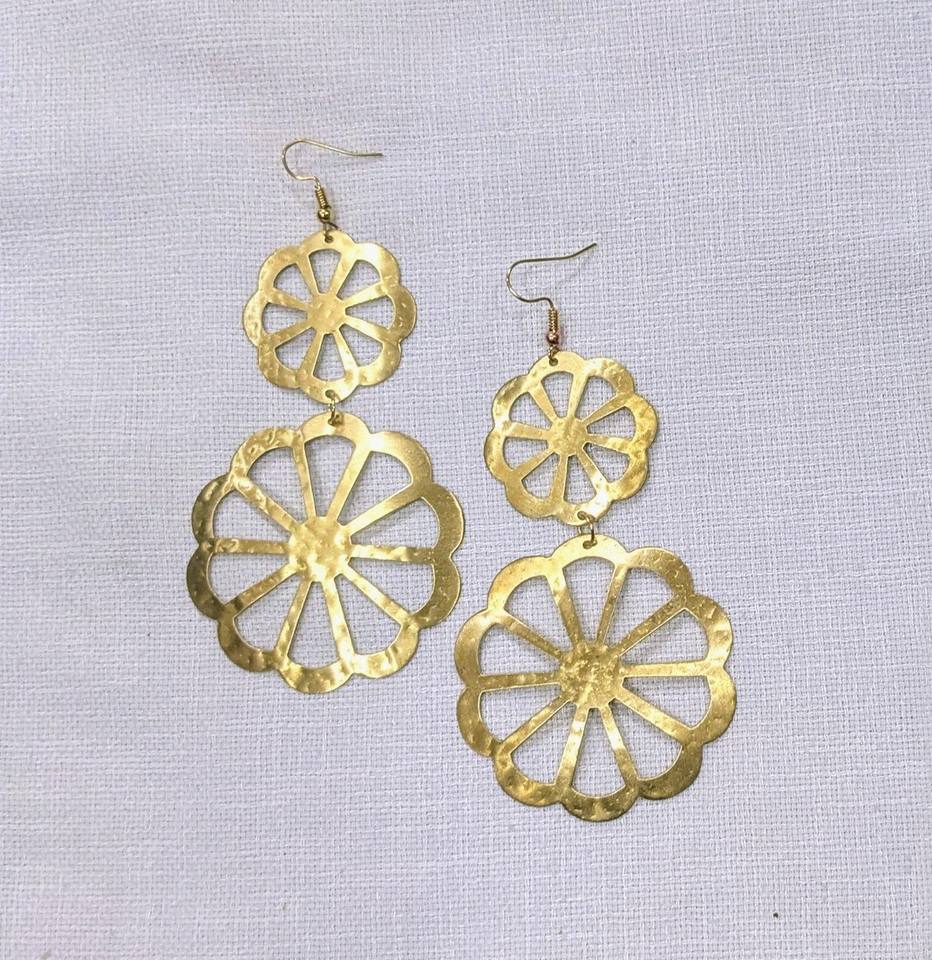ต่างหูโลหะทองเหลืองโบราณลายตอกแบบคลาสสิก รูปทรงเรขาคณิต ชุบทอง เครื่องประดับแฟนซีสำหรับผู้หญิงสำหรับวันครบรอบ