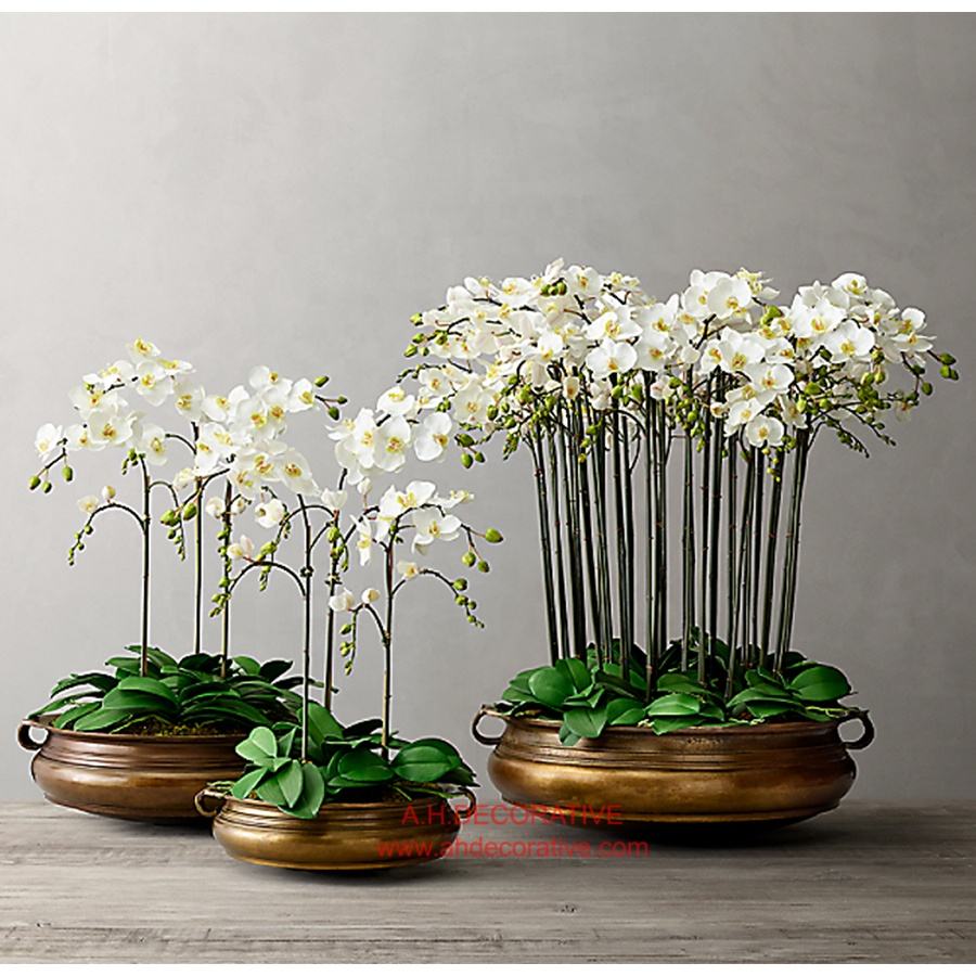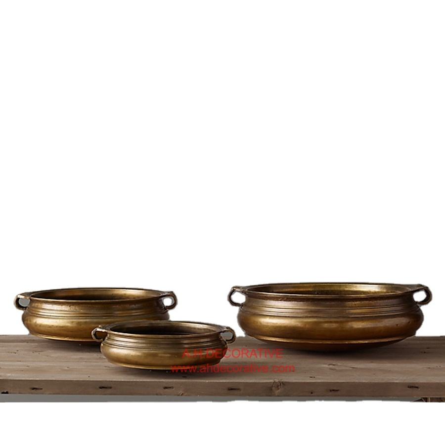 กระถางดอกไม้ทองเหลืองโบราณชุบโครเมียมจากโรงงานโดยตรง เป็นมิตรกับสิ่งแวดล้อม ชุด 3 ขนาดต่างกัน สำหรับใช้ในบ้าน