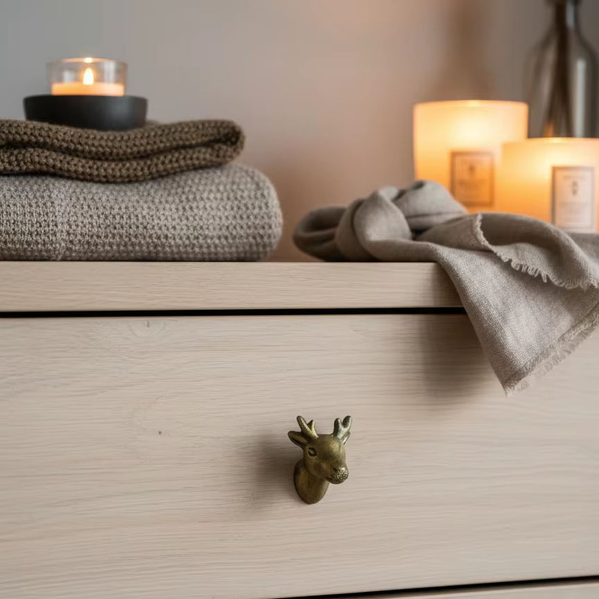 ลูกบิดหัวกวางทำจากทองเหลืองโบราณตู้ลิ้นชักลิ้นชักตกแต่งเฟอร์นิเจอร์ห้องครัวดีไซน์ร่วมสมัยทนทาน