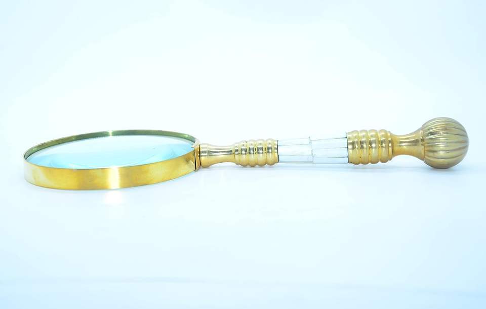 แว่นขยายประดับโต๊ะทำจากทองเหลืองพร้อมที่จับรูปเขาควายเลนส์ขยายสำหรับอ่านหนังสือ