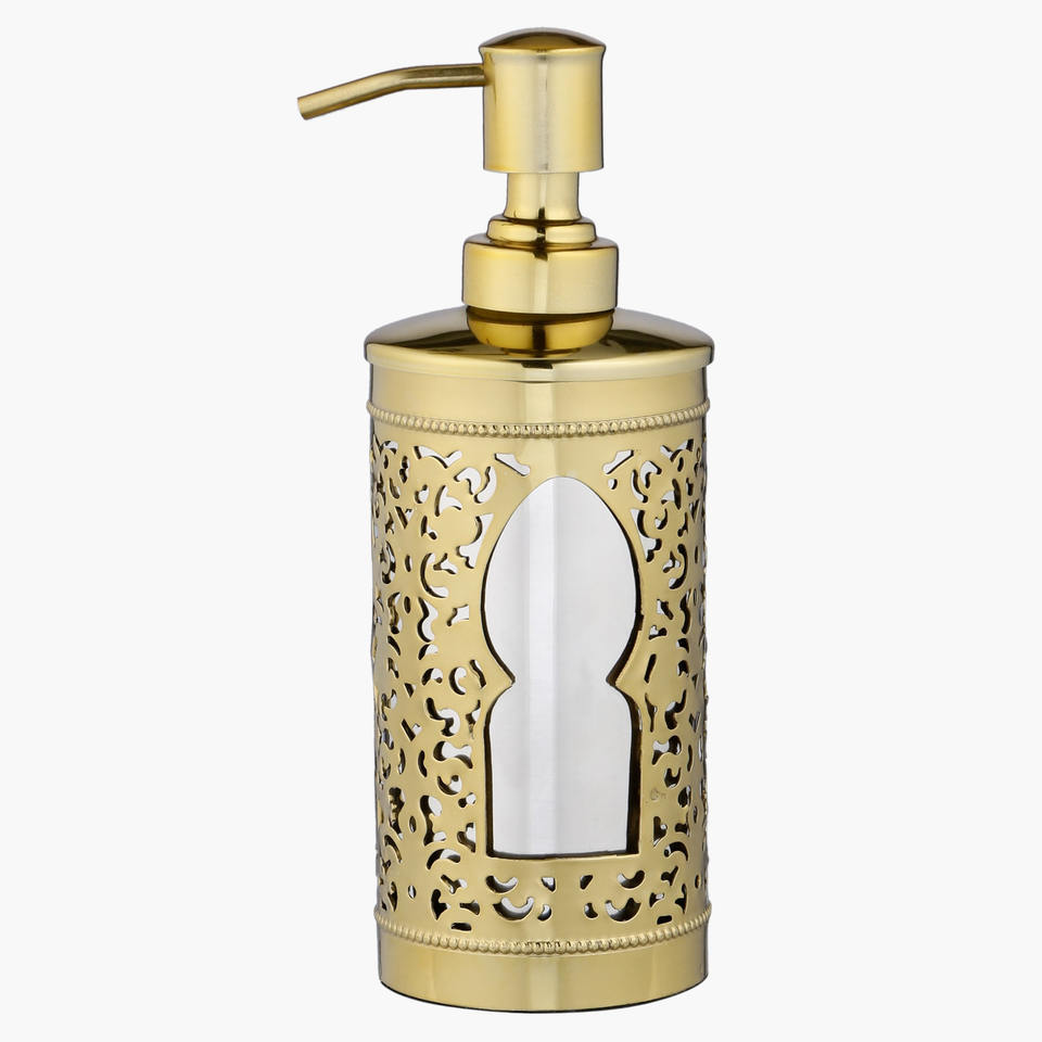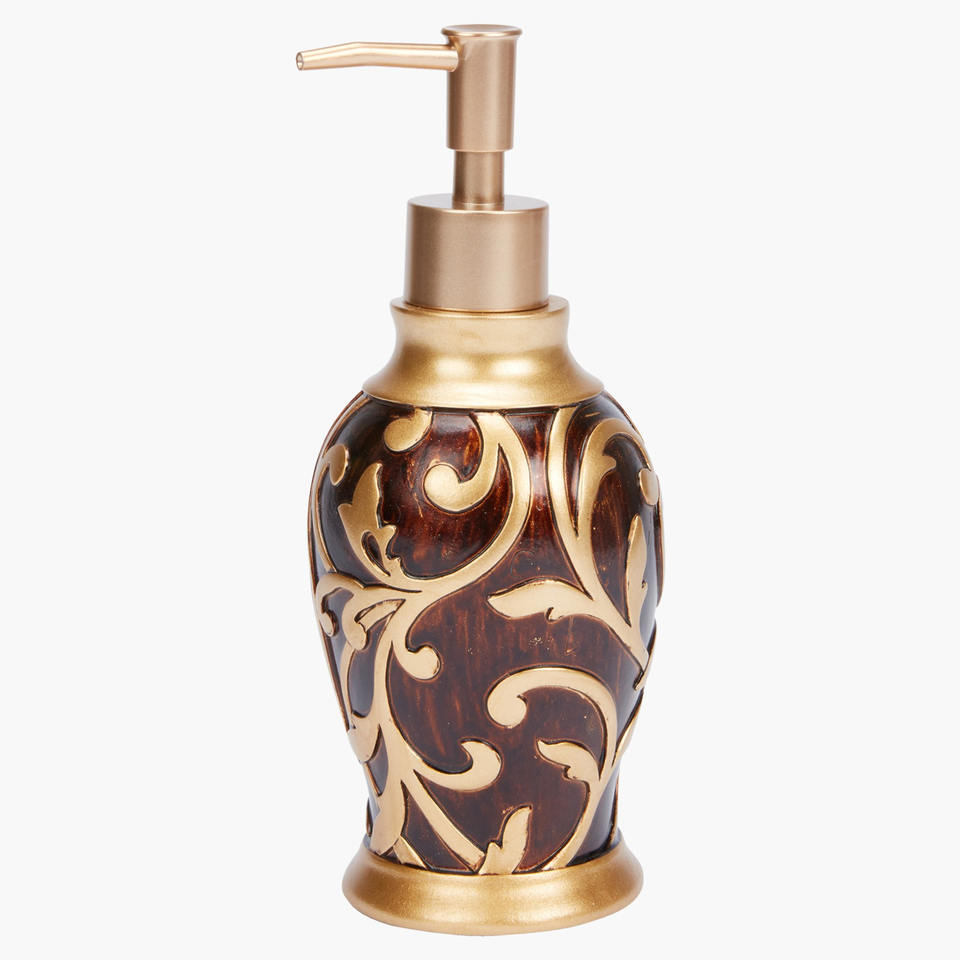 เครื่องจ่ายสบู่เหลวขวดโลหะทองเหลืองโบราณพร้อมขัดเงาสีทอง