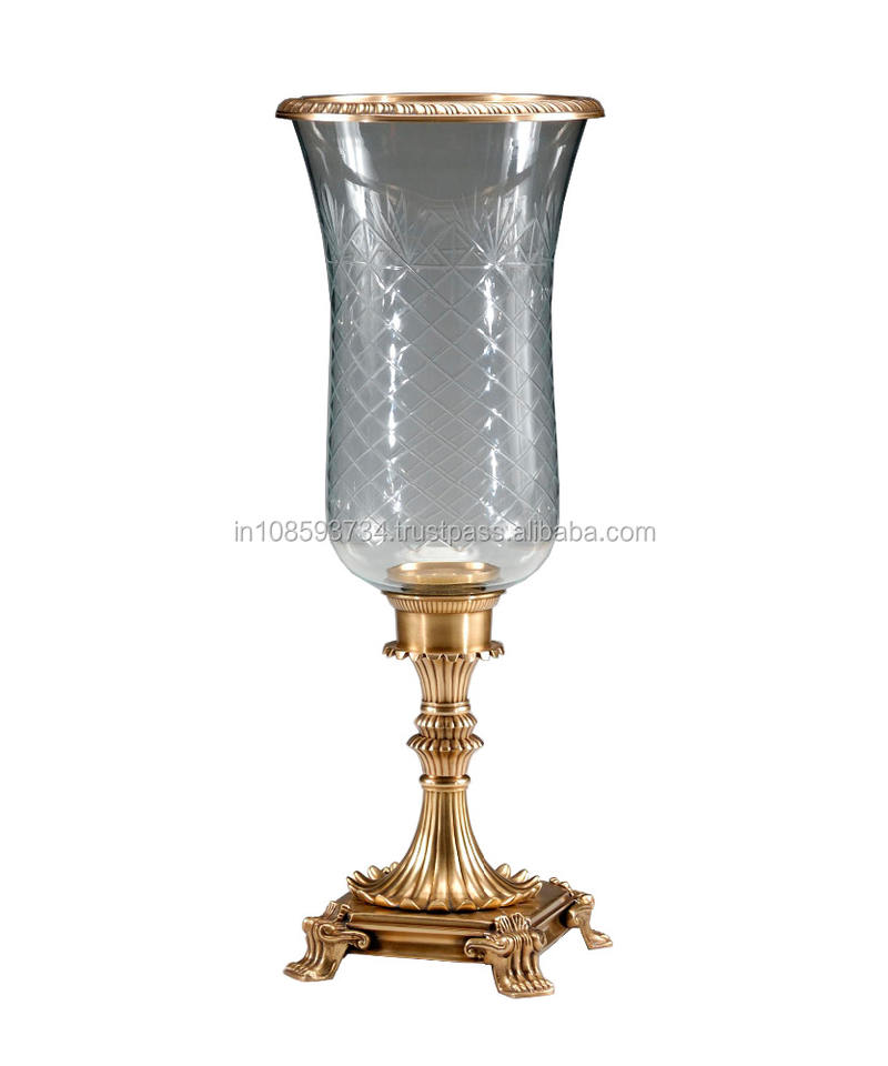 โลหะทองเหลืองโบราณพายุเฮอริเคนเชิงเทียนแก้วนูนการออกแบบ