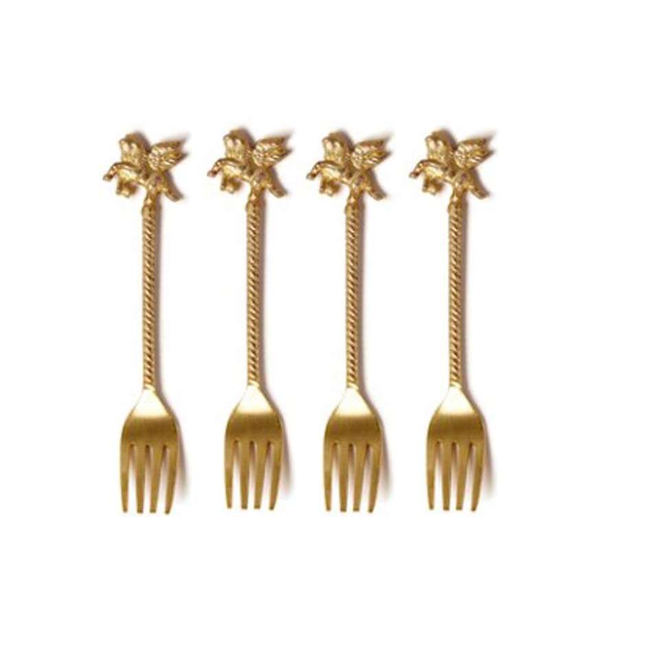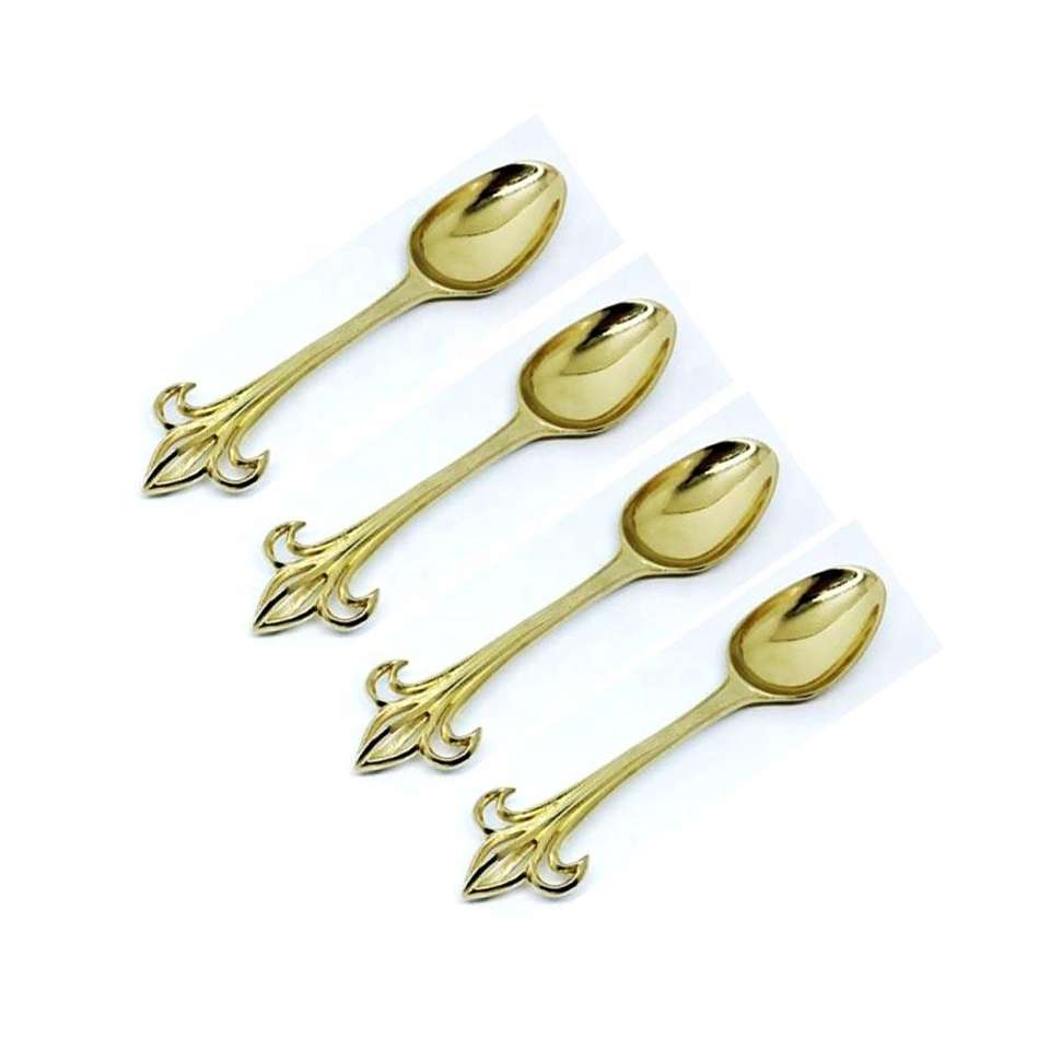 Antique Brass Mini Cutlery Set 4 Pcs with Lilly End Handles Perfect Blend of Traditional Craftsmanship and Timeless Elegance