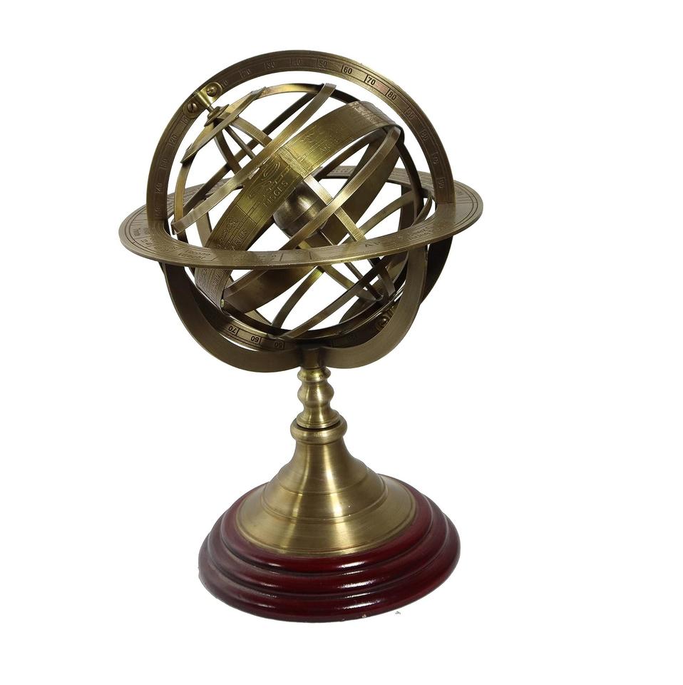 อาร์มารี่ทองเหลืองอเนกประสงค์ทรงกลมแอสโทรลาเบะรูปโลกโลหะแกะสลักจักรราศีบนท้องฟ้า