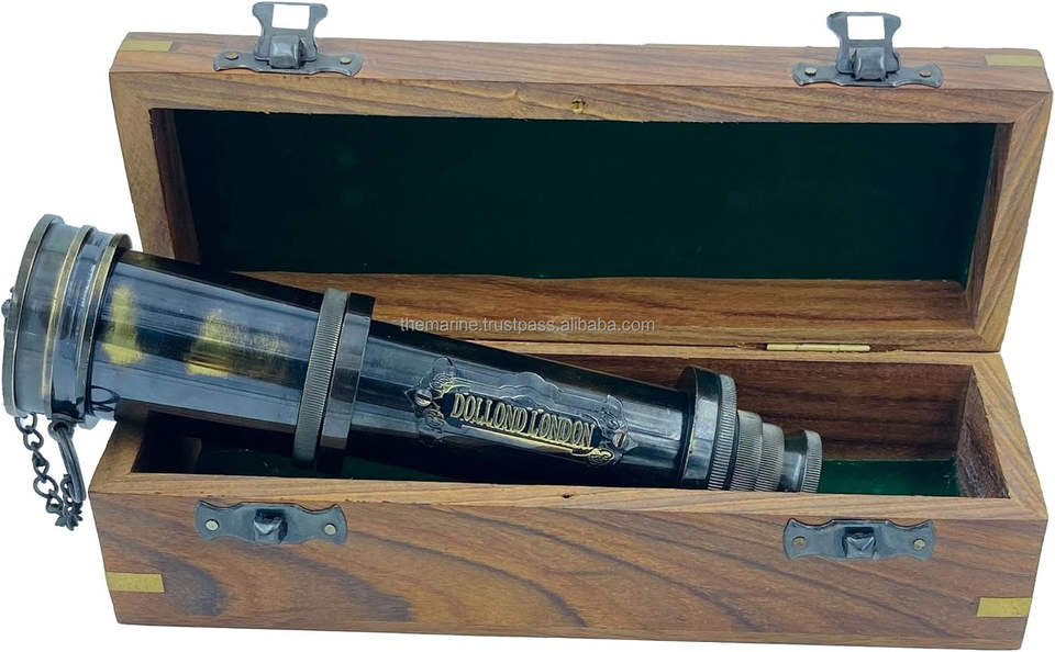 กล้องโทรทรรศน์มือถือทองเหลืองพร้อมกล่องไม้