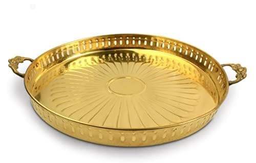 ถาดเสิร์ฟทองเหลืองโบราณเครื่องใช้บนโต๊ะอาหารทันสมัยสำหรับงานเลี้ยงที่มีสไตล์และของตกแต่งบ้านถาดเก็บสีทองที่ติดทนนาน
