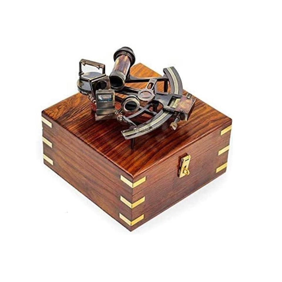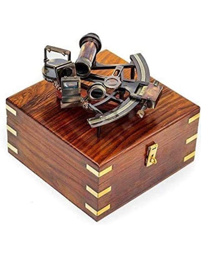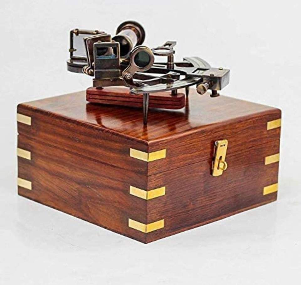 เครื่องวัดมุมทองเหลืองโบราณพร้อมกล่องไม้ที่ดูสวยงามแนววินเทจ