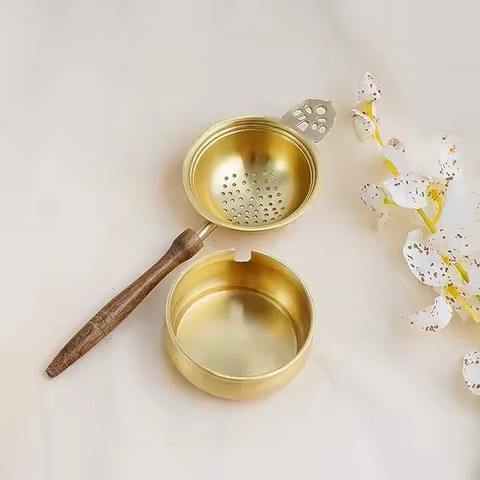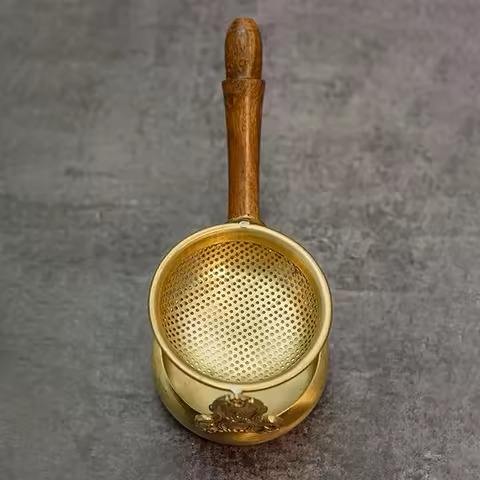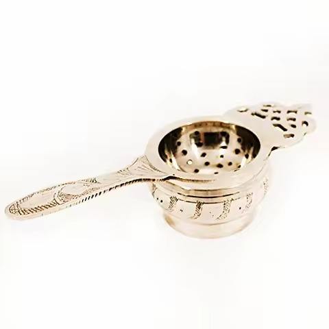 ที่กรองชาทองเหลืองโบราณมีการออกแบบตาข่ายอย่างดีที่กรองชาทองเหลืองทรงกลมสำหรับตกแต่งห้องครัวที่กรองชาทำด้วยมือ