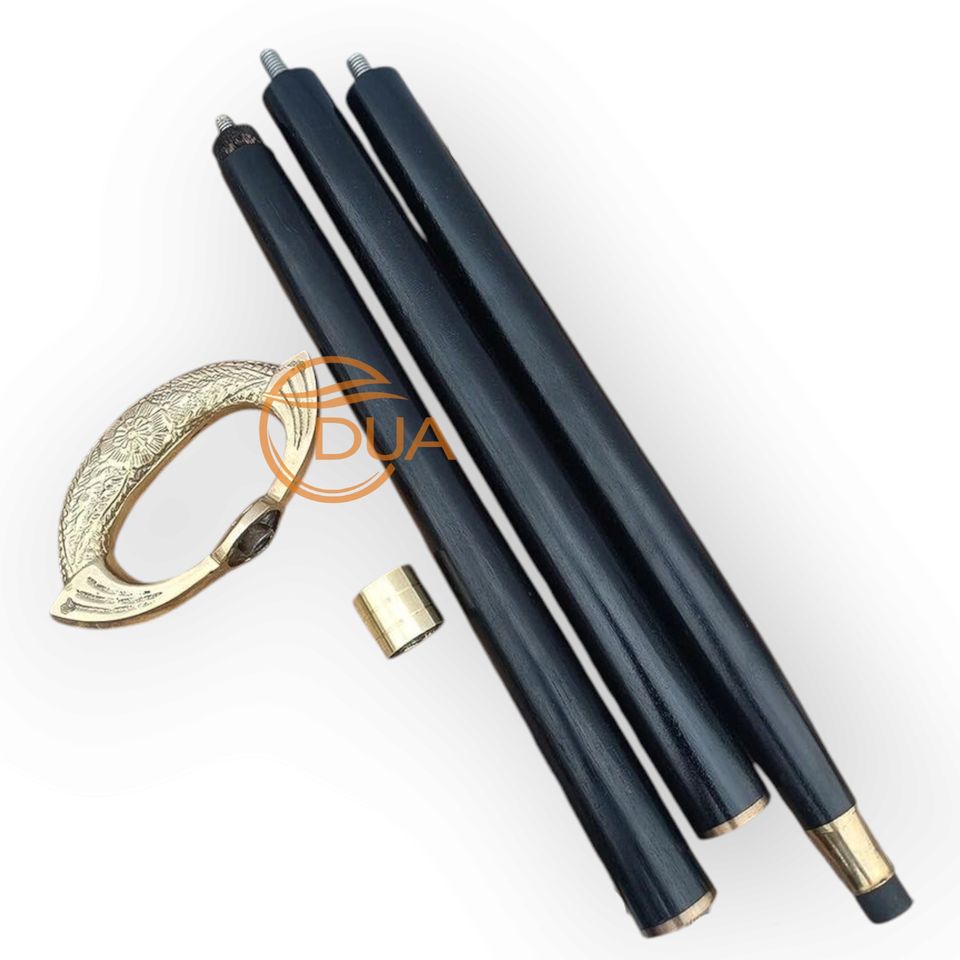ไม้เท้าทองเหลืองโบราณสไตล์วิคตอเรียนด้ามไม้สีดำ3ตอนสำหรับเดินไม้เท้าดีไซน์ย้อนยุคการเดินเรือปลายยางสำหรับการเดินทางของสุภาพบุรุษ