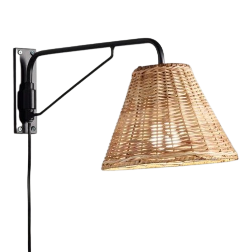 Antique Brass Wall Lamp with Rattan Shade Modern Bedside Lighting Easy Installation and Maintenance Durable Metal Material
