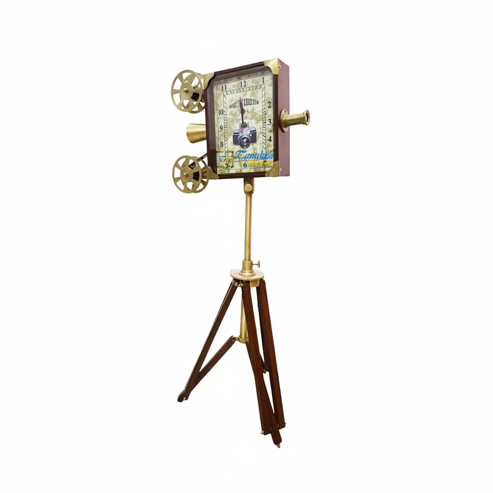นาฬิกาตั้งพื้นทรงสี่เหลี่ยมผืนผ้า ดีไซน์โปรเจคเตอร์ภาพยนตร์ ทำมือ ขัดเงา ชุบทองเหลืองโบราณ งานศิลปะสะสม