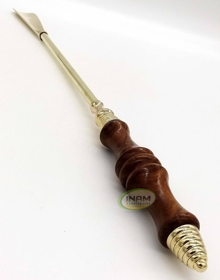 ทองเหลืองโบราณไม้ฮอร์นรองเท้าออกแบบไม้และทองเหลืองช้อนยก/ฮอร์นรองเท้า