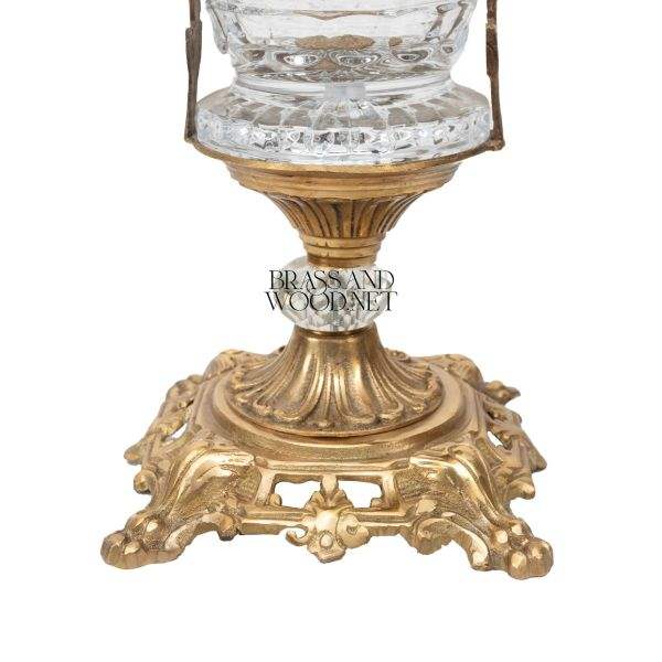 แจกันทองเหลืองและแก้วโบราณพร้อมฐานตกแต่งและรายละเอียดที่หรูหราสำหรับการตกแต่งบ้านที่หรูหราคลาสสิก