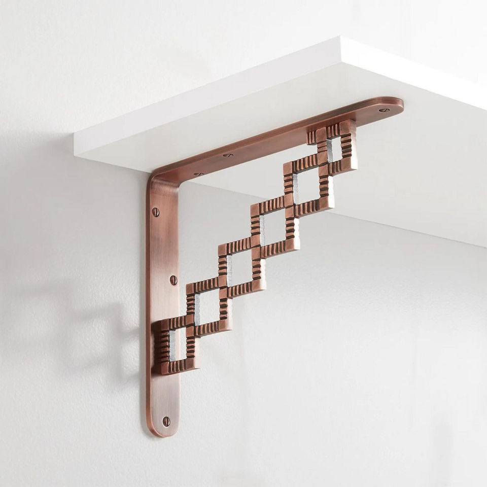 ชั้นวางของโลหะทองแดงโบราณชั้นวางของตกแต่งผนังชั้นวางของลอยรองรับงานหนักดีไซน์รูปใบไม้สไตล์วินเทจของตกแต่งบ้าน