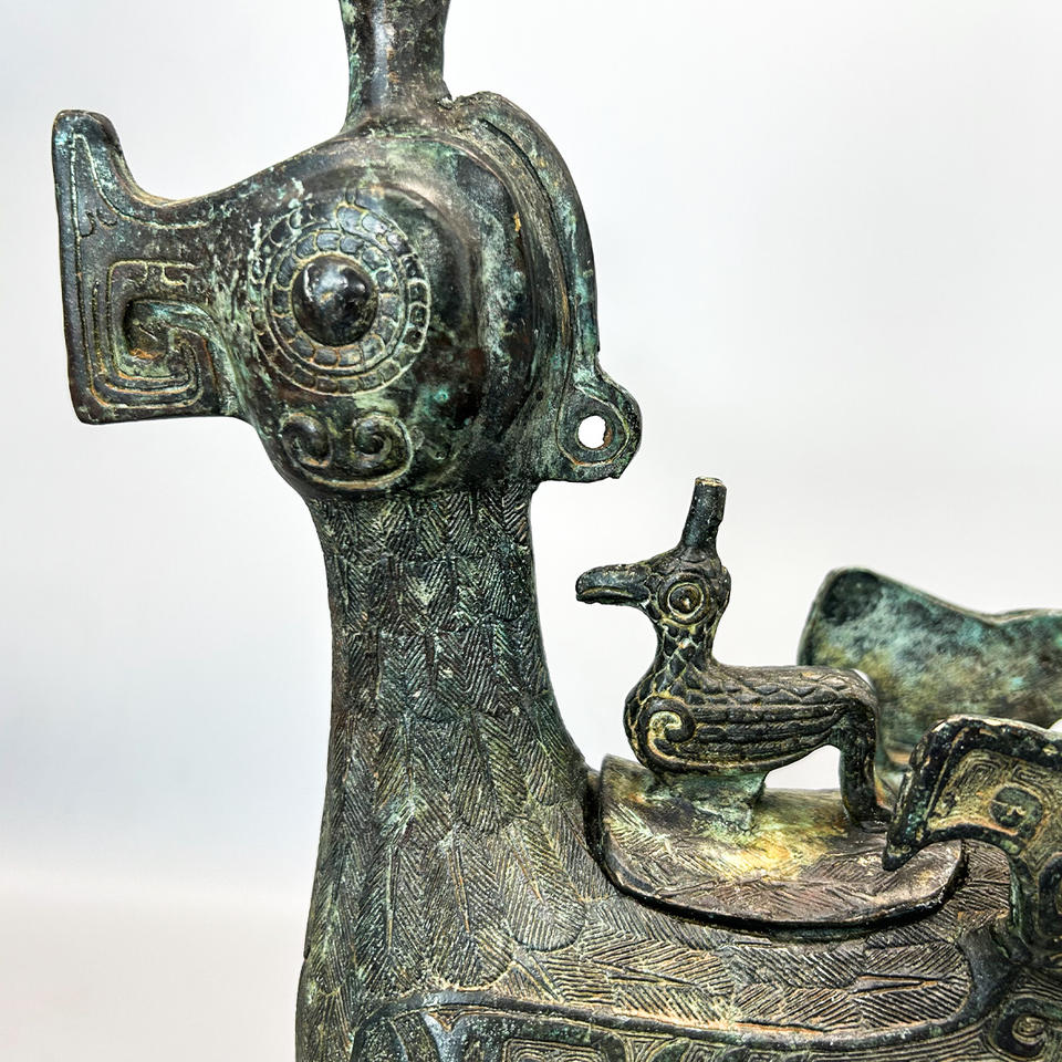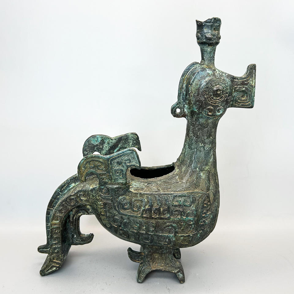 เครื่องทองสัมฤทธิ์โบราณที่เก็บรูปนกฟีนิกซ์รูปแบบการสะสมของพิพิธภัณฑ์ที่สวยงามสำหรับการจัดแสดงเทคนิคการหล่อ