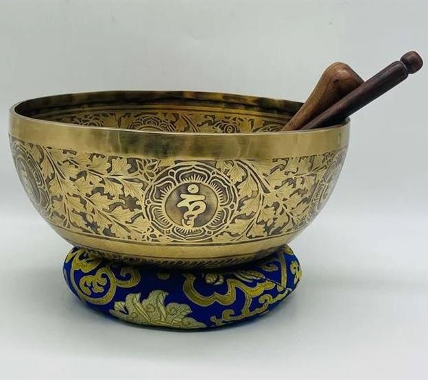 ขันเสียงโบราณสีบรอนซ์พร้อมลวดลายสีสันสดใสเพื่อสุขภาพและเสียงก้องอันทรงพลัง