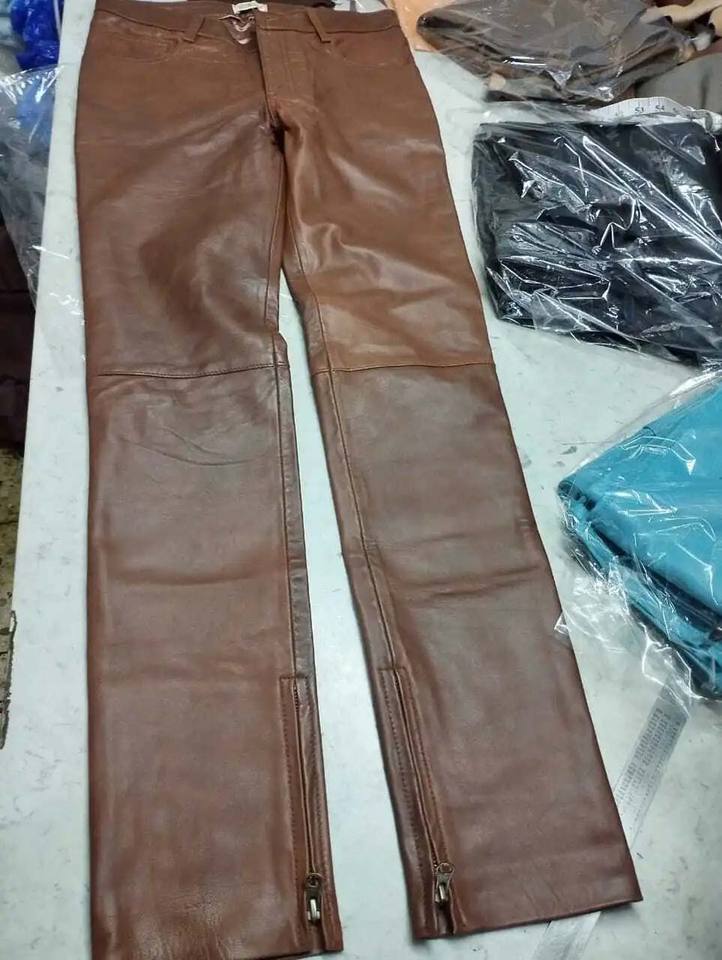 กางเกงหนังแท้สีน้ำตาลโบราณ คุณภาพพรีเมียม หนังแกะนุ่มพิเศษ สไตล์ไบค์เกอร์ เรียบง่าย สไตล์เกาหลี