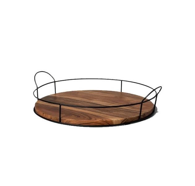 ถาดเสิร์ฟทรงสี่เหลี่ยมทำด้วยมือสีน้ำตาลแบบโบราณถาดไม้มะม่วงสไตล์โมเดิร์นขนาดกลางที่กำหนดเองสำหรับใช้ในบ้านและห้องครัว