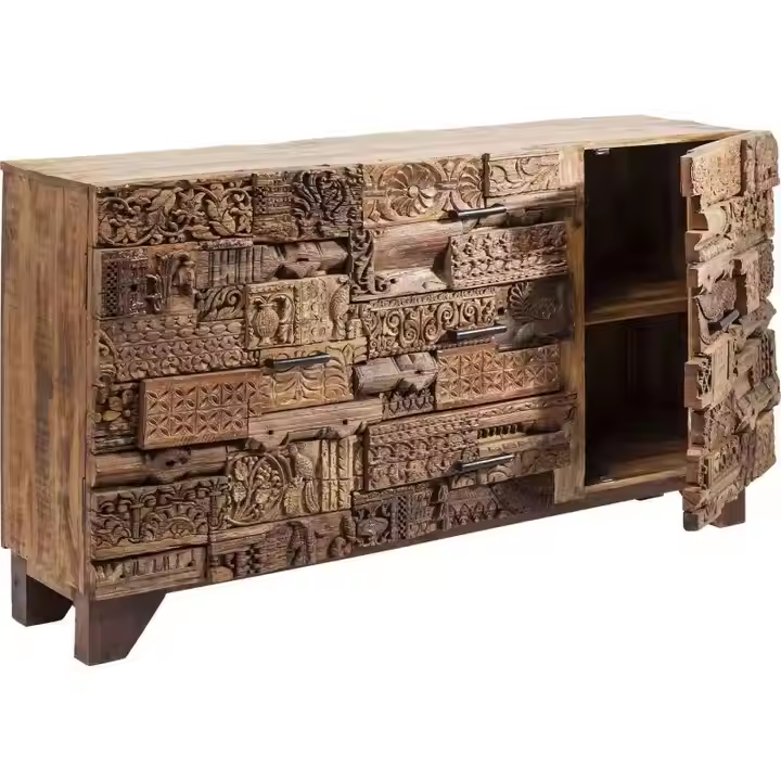 เฟอร์นิเจอร์บล็อกแกะสลักโบราณที่มีการแกะสลักของชนเผ่าและตู้บุฟเฟต์ไม้แบบยึดคืนพร้อมตู้ลิ้นชักสไตล์โบราณ