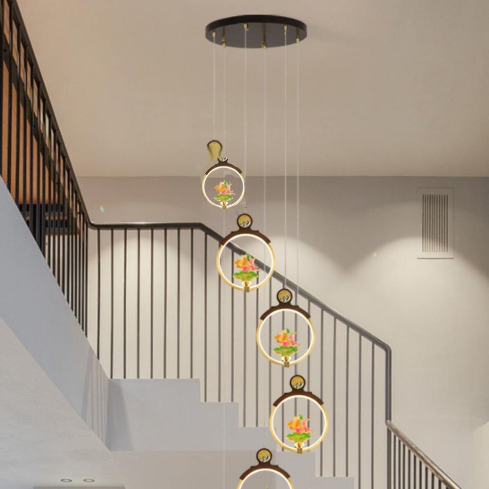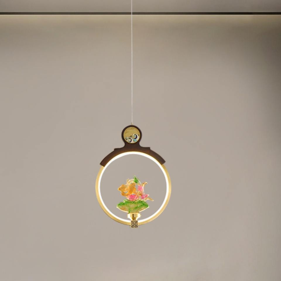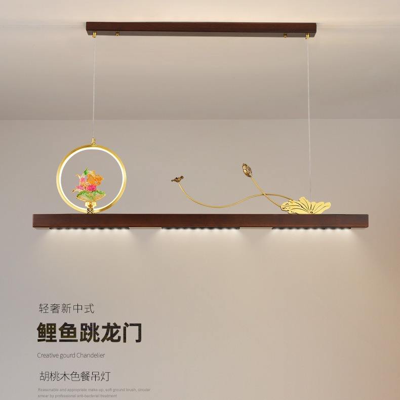 โคมไฟระย้าทองเหลืองสไตล์จีนโบราณ พร้อมแถบไฟ LED ขนาดกลาง ใช้ไฟ AC เหมาะสำหรับห้องน้ำชาหรือคลับ