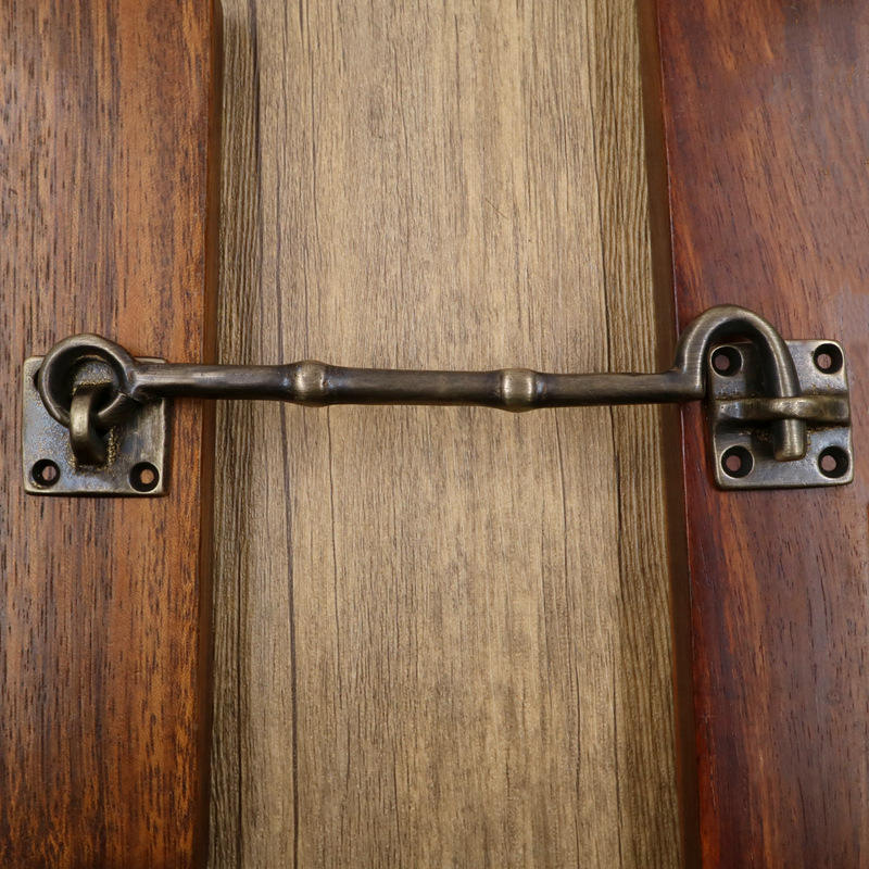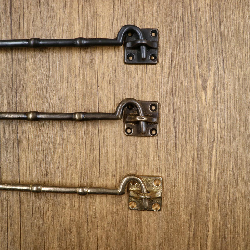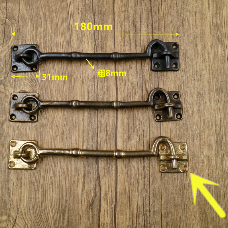 ตะขอหน้าต่างทองเหลืองสไตล์จีนโบราณ ตัวล็อคกันลมทำจากทองแดงทั้งชิ้น อะไหล่เสริมสำหรับประตูหน้าต่างแบบหนา ตะขอหน้าต่างกันลม