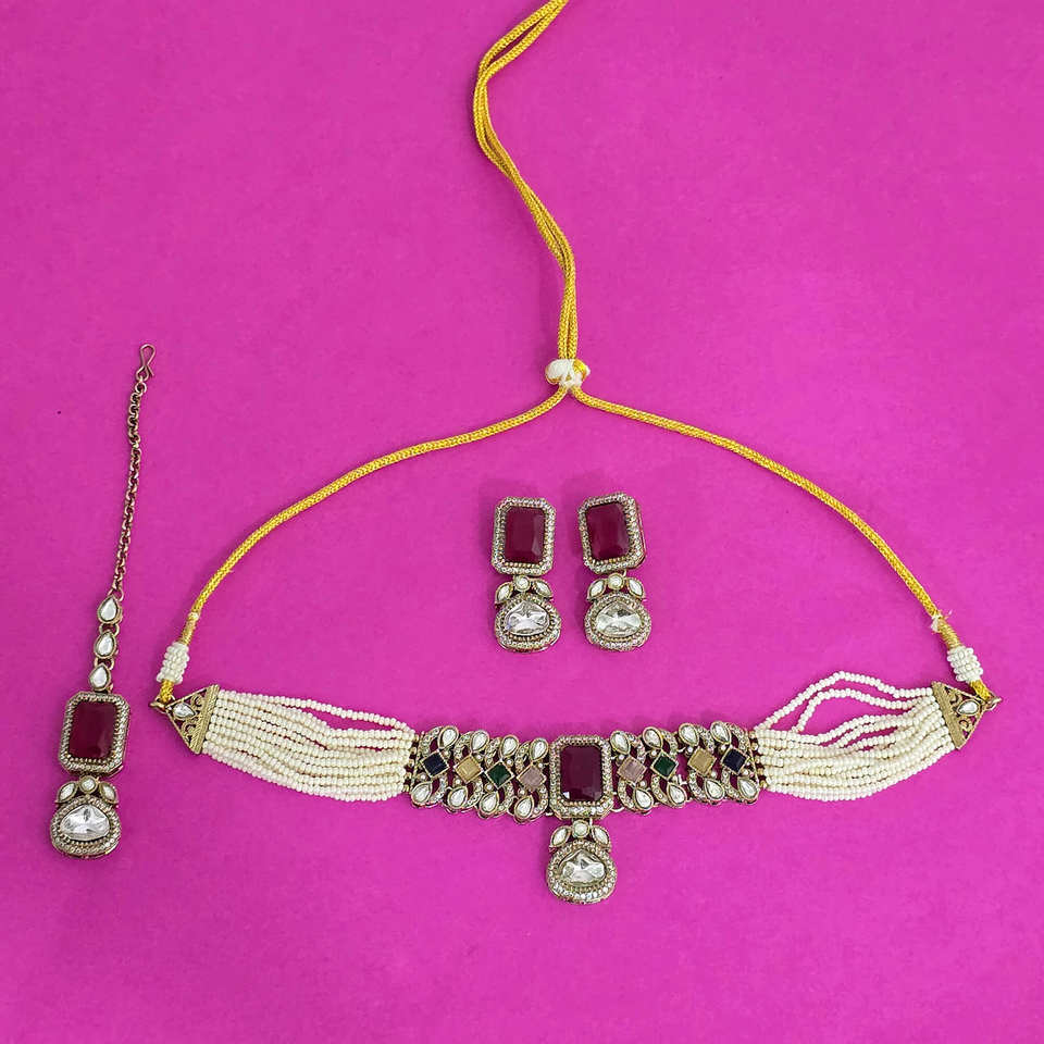 สร้อยคอโช้คเกอร์แบบโบราณพร้อมจี้เครื่องประดับแฟชั่นสำหรับส่งออกสร้อยคอสไตล์หรูหราในอินเดีย