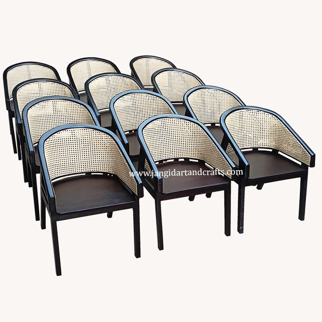 ที่พักแขนหวายสีดำแบบโบราณเก้าอี้ทรงหลุยส์ที่ทำจากไม้มะม่วงแข็งเก้าอี้รับประทานอาหารในงานแต่งงานในโรงแรมร้านอาหารเก้าอี้รับประทานอาหาร