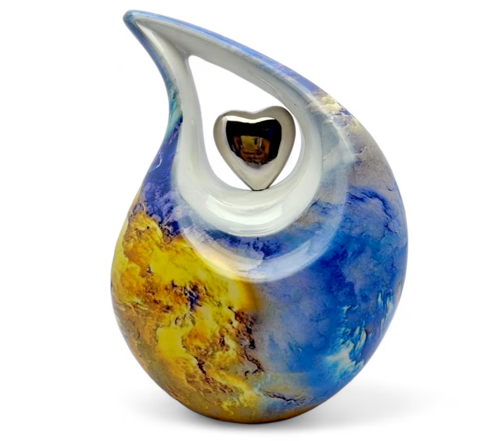 โกศบรรจุอัฐิรูปหยดน้ำสีสันโบราณ พร้อมรูปหัวใจ สำหรับผู้ใหญ่ ทำจากโลหะทองเหลือง/อะลูมิเนียม