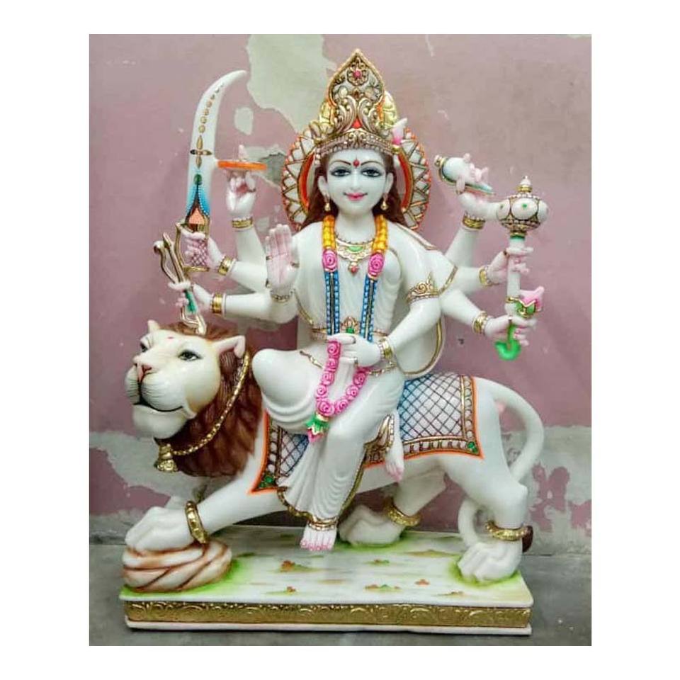 ประติมากรรมพระแม่ดูรกีมาหินอ่อนหลากสีสันโบราณ
