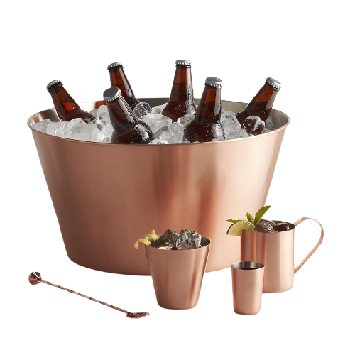 อ่างเบียร์ทำมือเคลือบทองแดงโบราณอุปกรณ์บาร์สแตนเลสสำหรับตกแต่งอ่างน้ำแข็งสำหรับขวดเบียร์