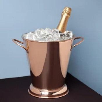 ถังน้ําแข็งโลหะทองแดงโบราณพร้อมด้ามจับและที่คีบใช้สําหรับถังน้ําแข็งและตู้แช่ไวน์ Partywear
