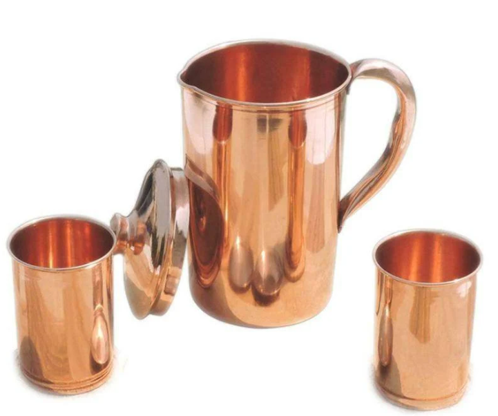 เหยือกน้ำทองแดงโบราณเป็นมิตรกับสิ่งแวดล้อมเหยือกน้ำเหยือกเคลือบเงาสำหรับตกแต่งโรงแรมโรงแรมงานหัตถกรรม saniya ทำจากทองแดงแท้อินเดีย
