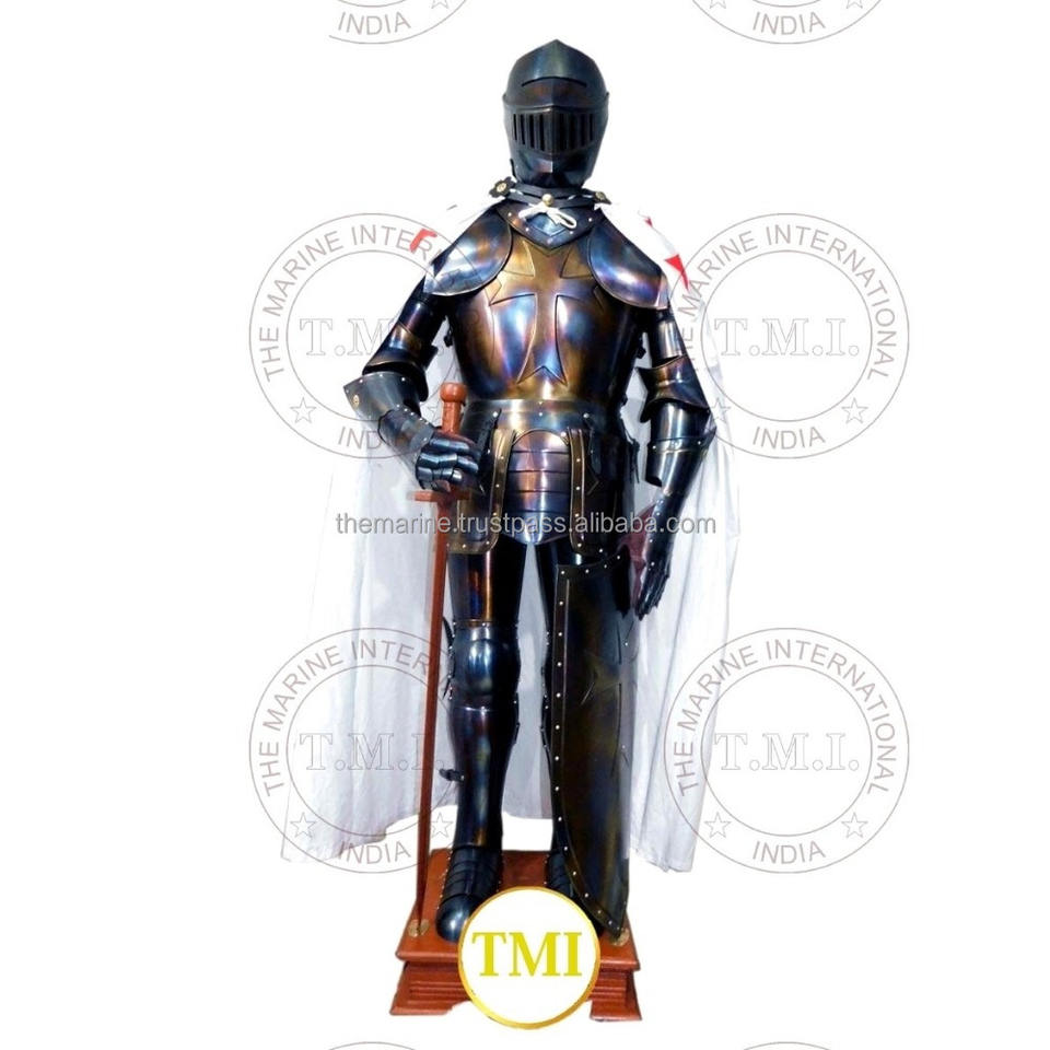 ชุดเกราะนักรบครูเสดโบราณแบบเต็มตัว ของสะสมชุดเกราะอัศวินยุคกลางแบบเต็มตัว พร้อมฐานตั้งโชว์