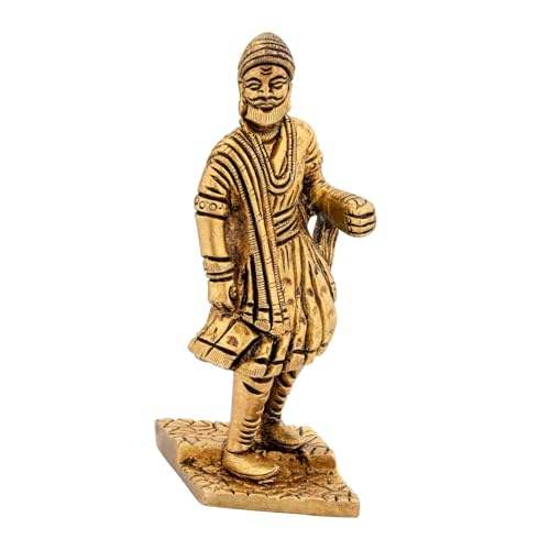 รูปปั้นทองเหลือง Chhatrapati Shivaji Maharaj ตกแต่งแบบโบราณรูปปั้นขัดเงามีลายพิมพ์แบบนูน