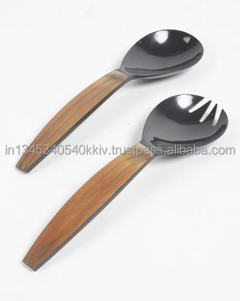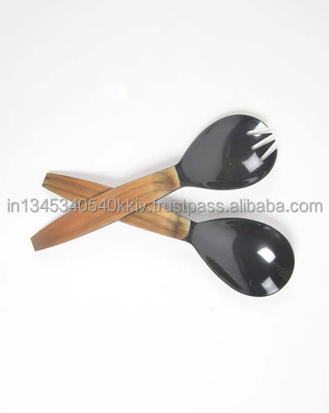 ชุดอุปกรณ์เสิร์ฟสลัดงานฝีมือโบราณวินเทจ รุ่น SSCI-03 ขนาด 11 นิ้ว ด้ามจับทำจากเขาควาย ผลิตโดย SS CRAFT INDIA สามารถปรับแต่งได้