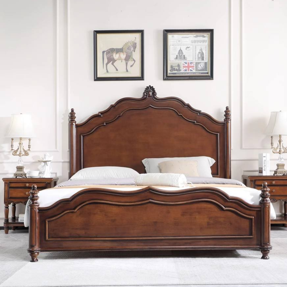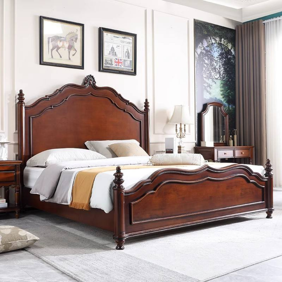 ชุดห้องนอนดีไซน์โบราณ ทำจากไม้มะฮอกกานีคุณภาพสูง แกะสลักอย่างประณีต สีน้ำตาลเข้ม สำหรับเฟอร์นิเจอร์ห้องนอน