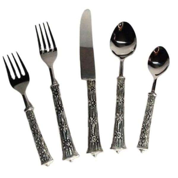 ชุดช้อนส้อมมีดดีไซน์โบราณทำจากสแตนเลสพร้อมด้ามทองเหลืองเครื่องใช้บนโต๊ะอาหารที่สมบูรณ์แบบสำหรับรับประทานอาหารและเครื่องใช้บนโต๊ะอาหารที่หรูหรา