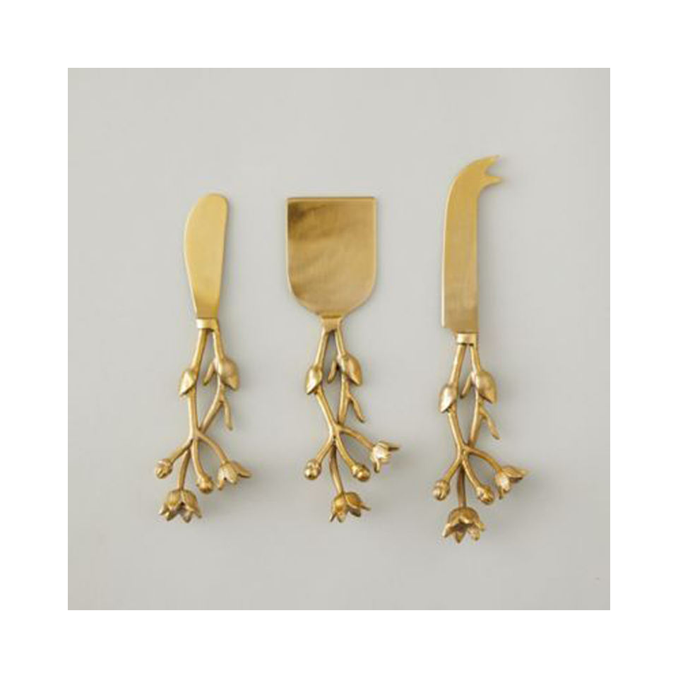 ชุดชีสขนนกสีทองดีไซน์แบบโบราณชุดชีสทำจากสแตนเลสพร้อมชุดชีสชุบทอง
