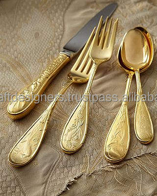 ชุดเครื่องใช้บนโต๊ะอาหารเหล็กชุบทองดีไซน์แบบโบราณมีด้ามจับดีไซน์สวยงามตกแต่งโต๊ะรับประทานอาหารอุปกรณ์โลหะใหม่