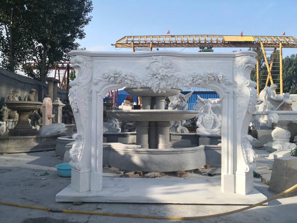 เตาผิงหินธรรมชาติใช้สำหรับโรงแรมกลางแจ้งเตาผิงหินอ่อนอิสระแกะสลักด้วยมือดีไซน์โบราณ